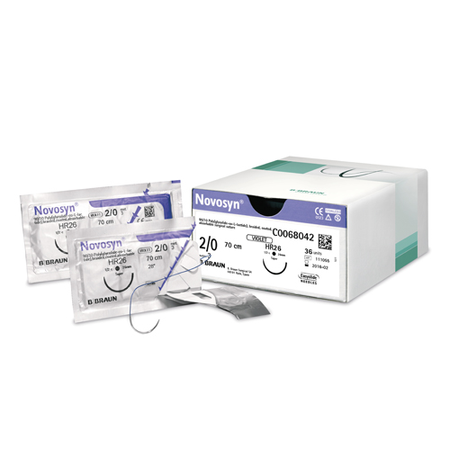 Keskipitkällä aikavälillä resorboituva multifilamentti. Hyvä vetolujuus ja solmun pitävyys. Novosyn® resorboituu hydrolysoitumalla 56-70 päivässä. Väri violetti.